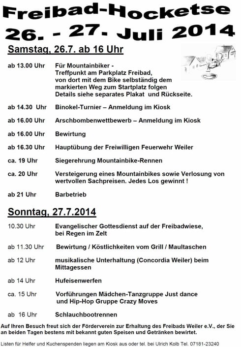 Meldungen sind ab sofort möglich am Kiosk des Freibad Weiler und unter der Telefonnr. 0157-52854088.