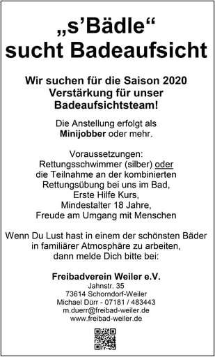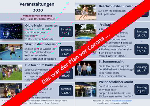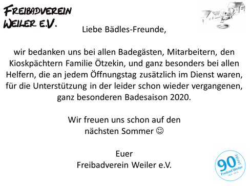Bei uns steht die Entscheidung noch aus, ob das „Bädle“ in dieser Saison geöffnet werden kann oder nicht. Eine Öffnung in Zeiten von Corona bringt einen erheblichen personellen Mehraufwand mit sich.