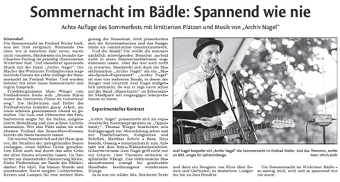 Bei der achten Auflage am Samstag, 8. August 2020 spielt „Archiv Nagel“.